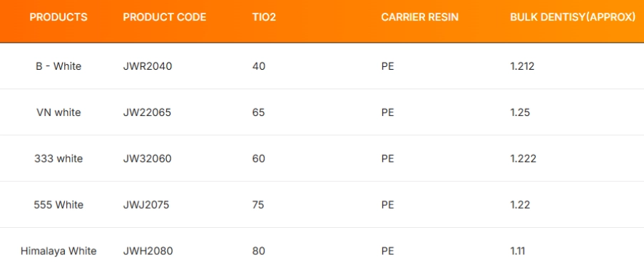 We offer formulations ranging from 40% up to 80% TiO₂. The 80% premium grade is ideal for thin-walled films and applications requiring maximum opacity at low addition rates.