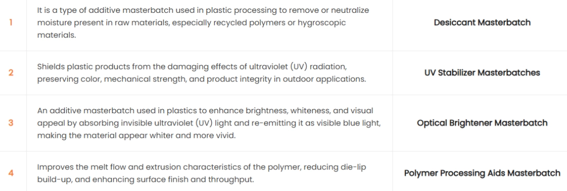 Additive Masterbatches are the silent heroes of the plastics industry. They are highly concentrated formulations used in small proportions to fundamentally alter and optimize the production process and final properties of plastic products.